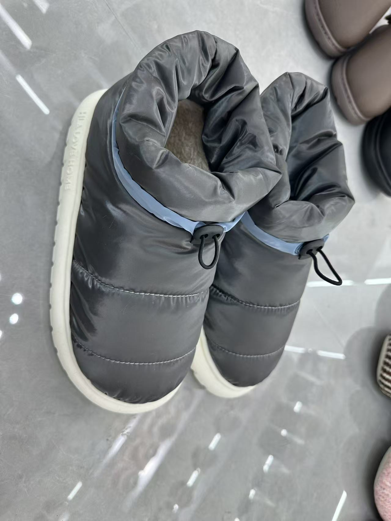 Lesijia аяқ киімінен қысқы маусымның негізгі жаңа өнімі ретінде, Қытайда жасалған су өткізбейтін су өткізбейтін мақта иілген мақта тәпіштері жаңбырлы және қарлы күндер үшін жасалған. Оларды үйде де, ашық ауада киюге болады, бұл қысқы тәпішке «дымқылданудан қорықпаудан қорықпау» болып табылады.